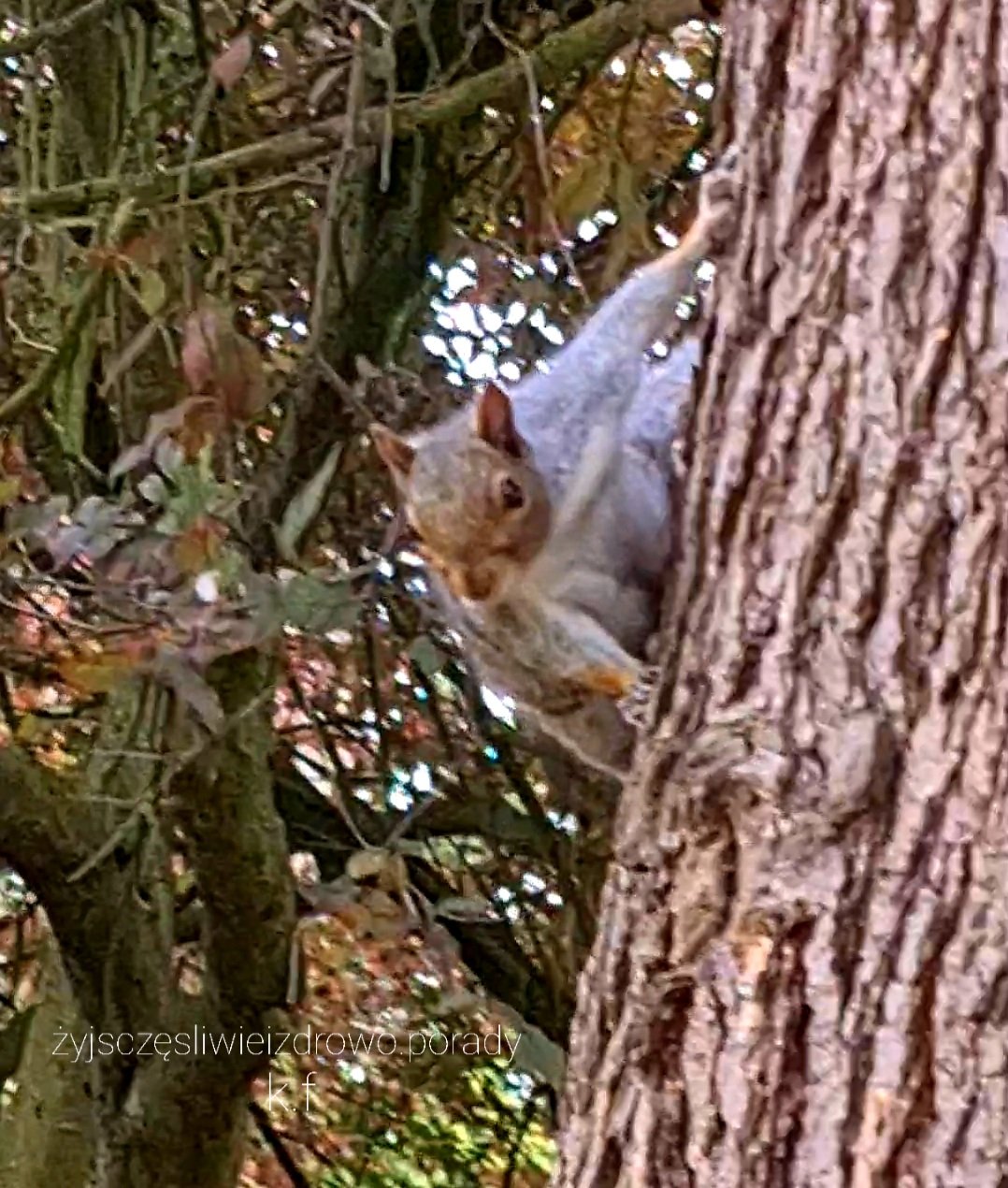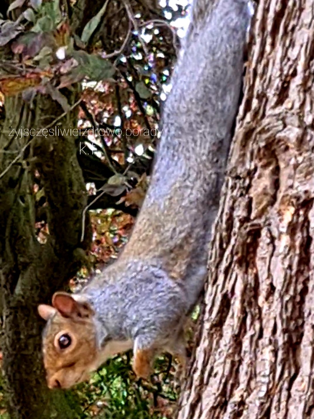 Podczas mojego jesiennego spaceru nie tylko wykonuję zdjęcia pięknej jesieni, ale udaje mi się przekonać czasem jakąś wiewióreczkę do zdjęcia. Udało mi się nawet nagrać krótki filmik z wiewiórką w roli głównej.